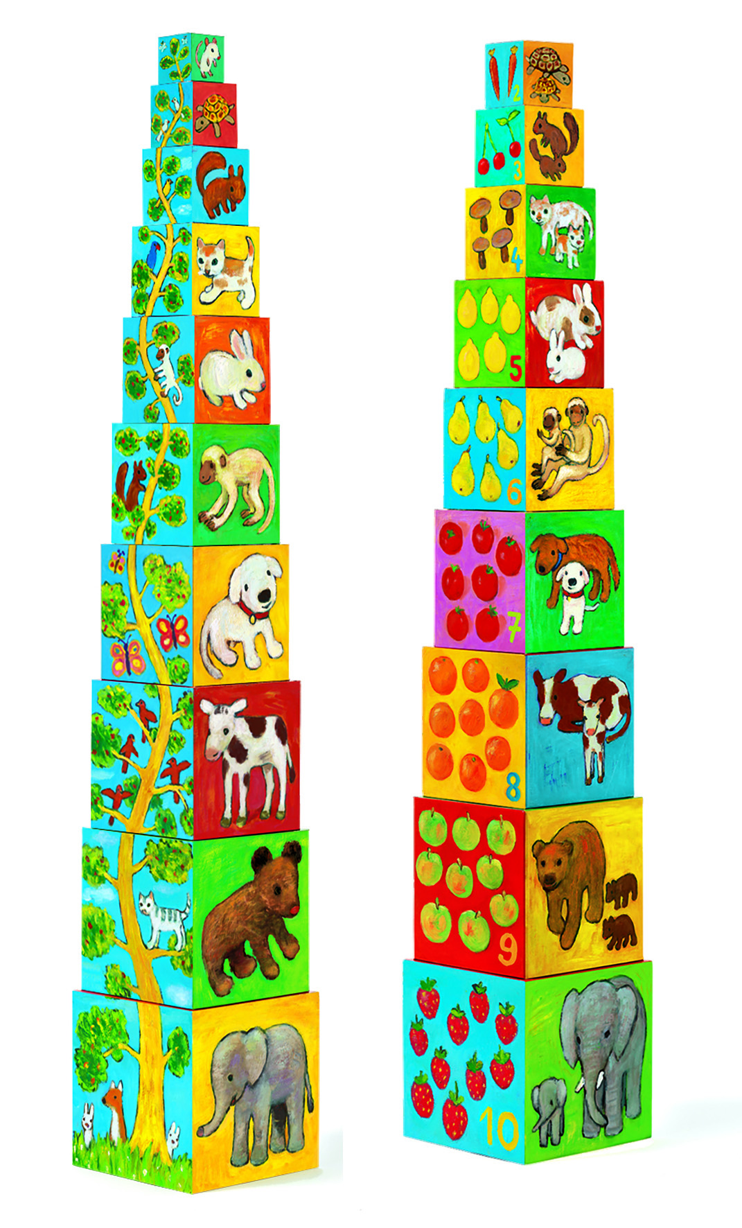 10 cubos para apilar en el cuál observará imágenes coloridas y divertidas. Ayudará con la destreza de tú pequeño.  Contiene: 10 cubos / altura 86 cm.