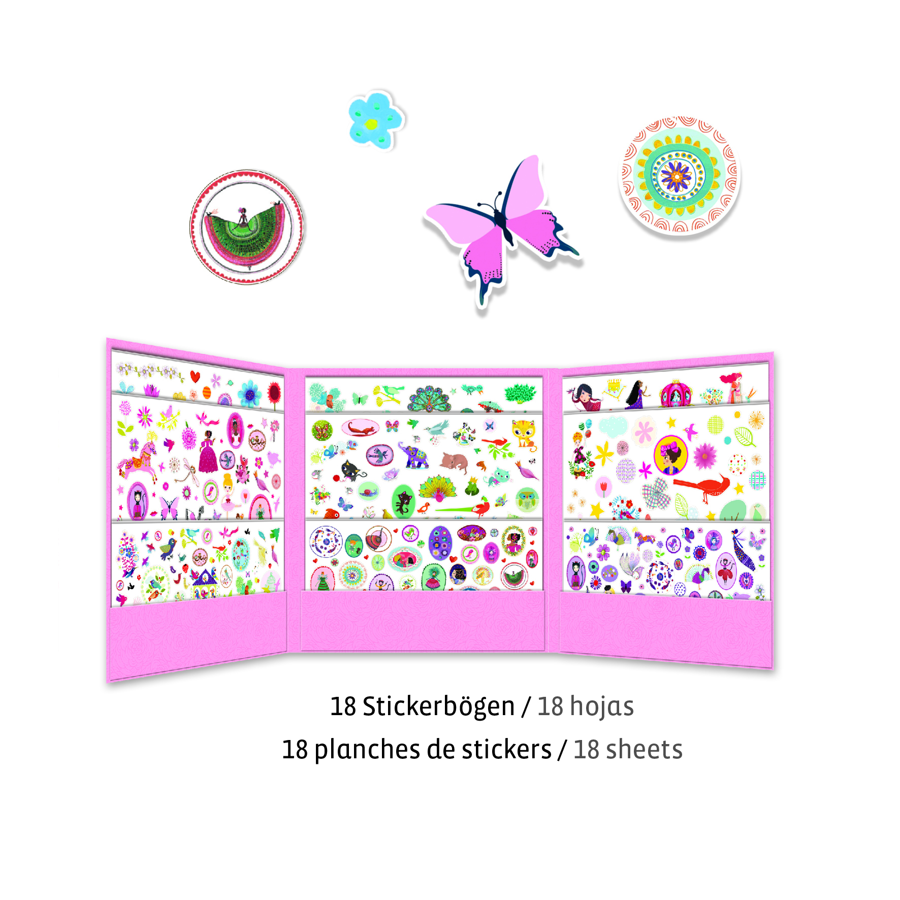 Stickers para crear escenas, Hacer decoraciones a sus cuadernos, Cartas etc. Contiene: 9 temas con 1000 stickers diferentes.