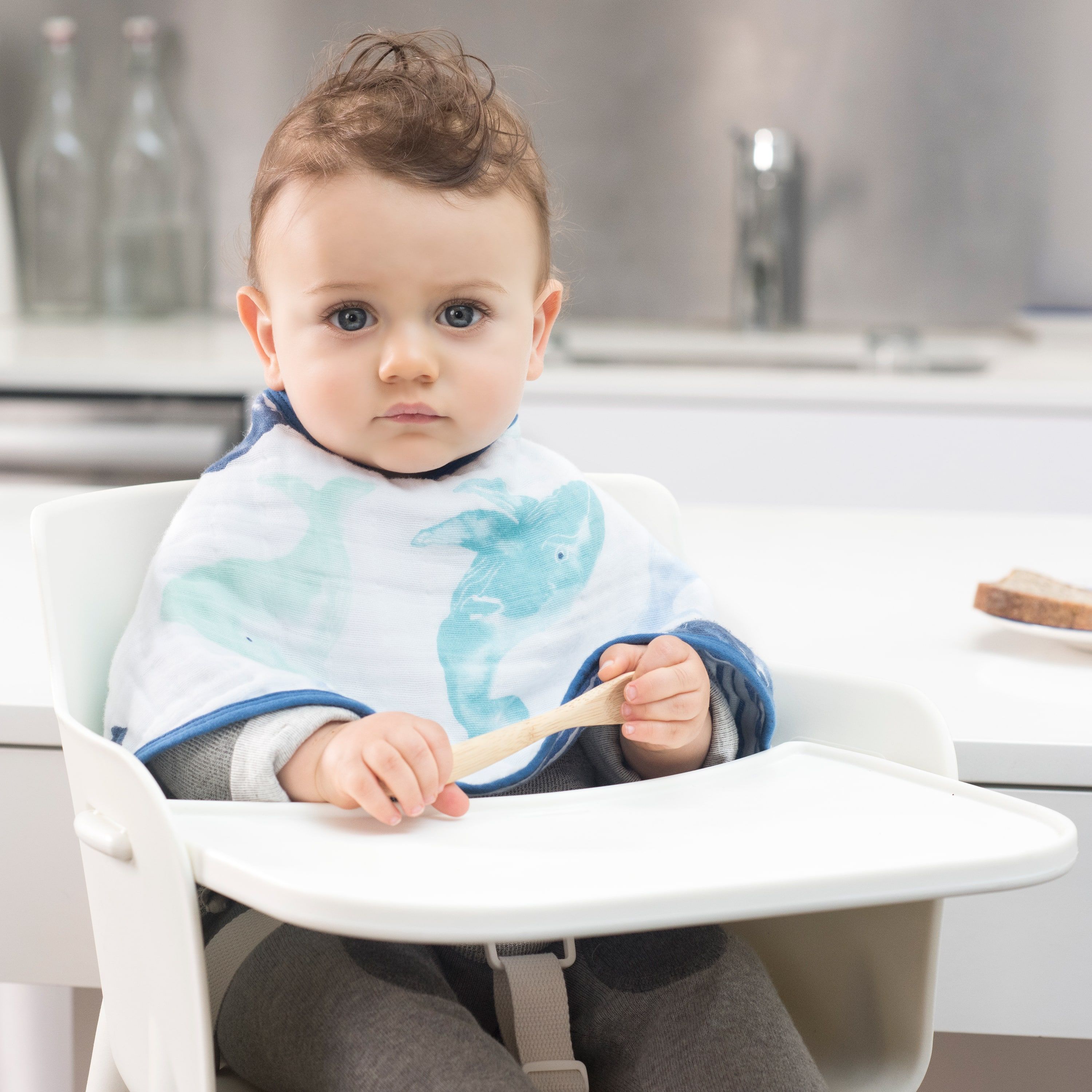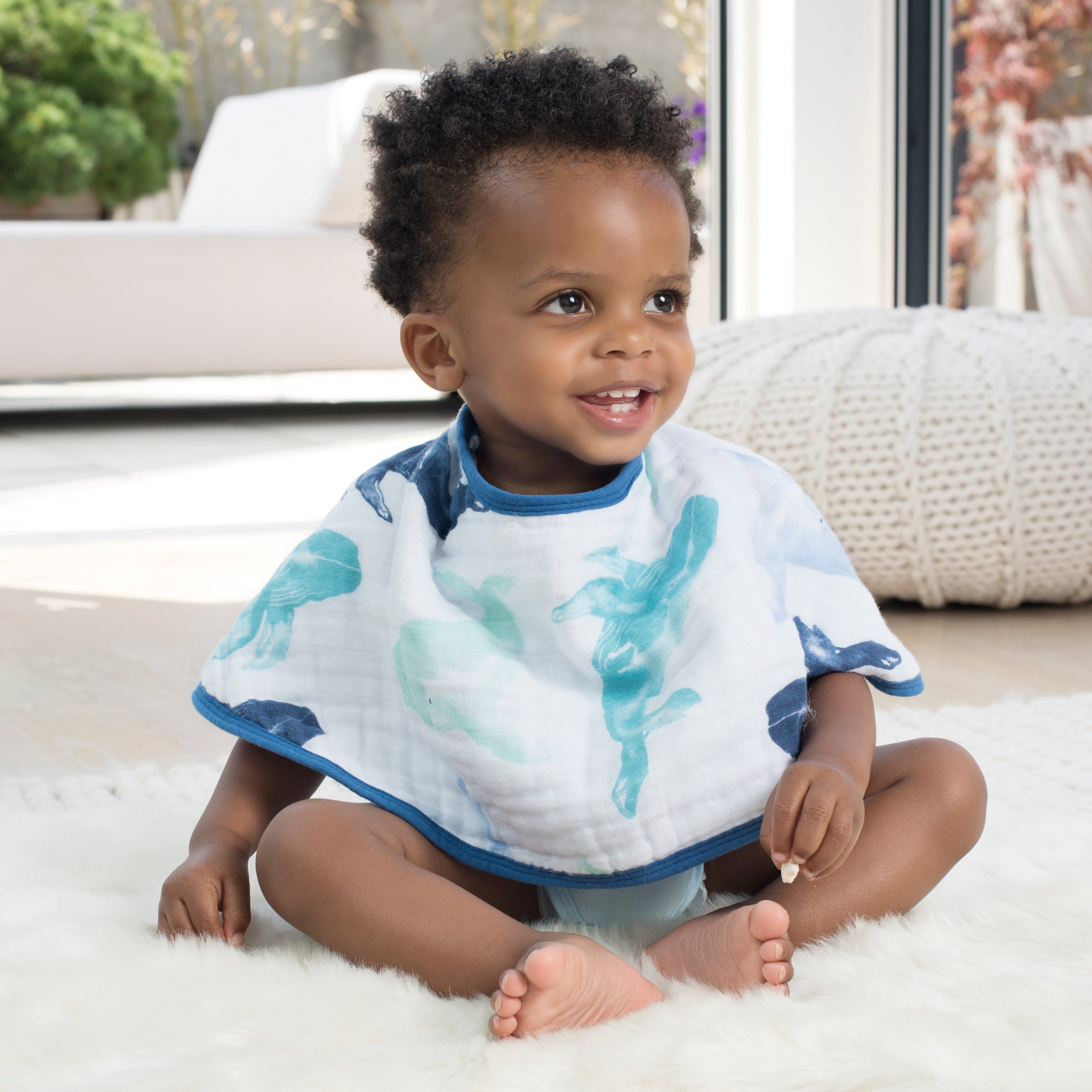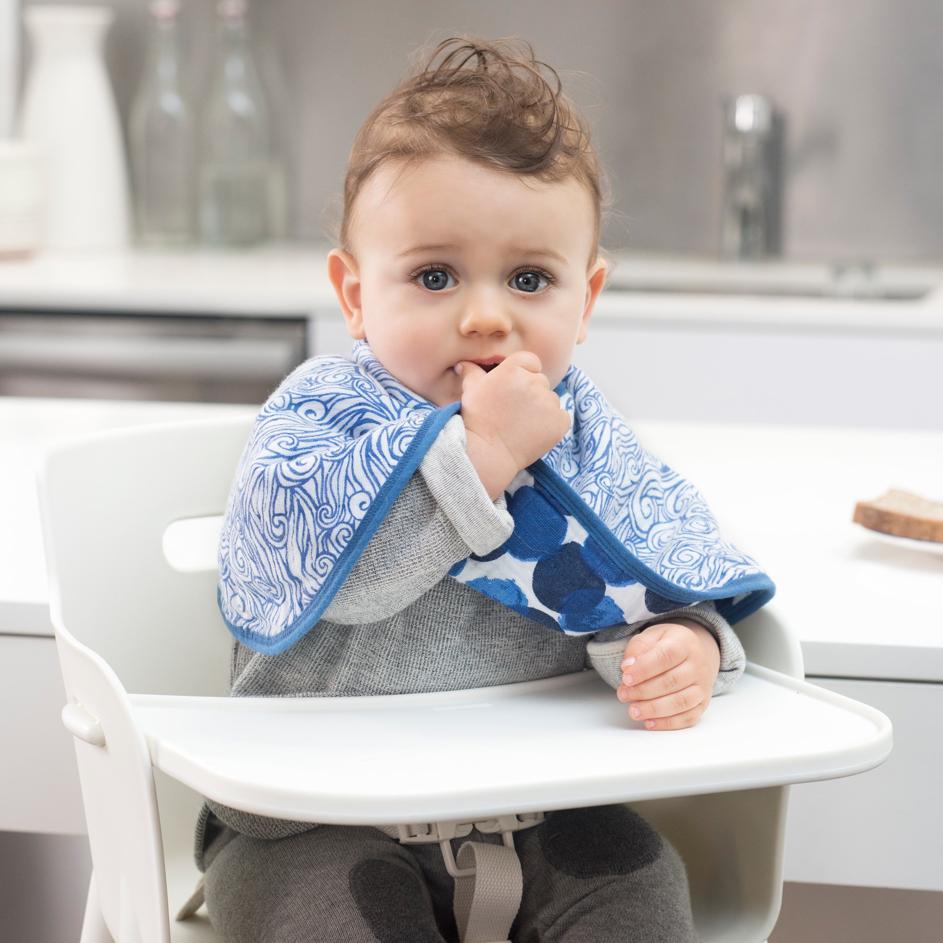 Nuestra babita/babero son de cuatro capas de muselina 100% algodón. Sirven como babita para el hombro y tiene un broche a presión por lo que también se puede usar como babero.