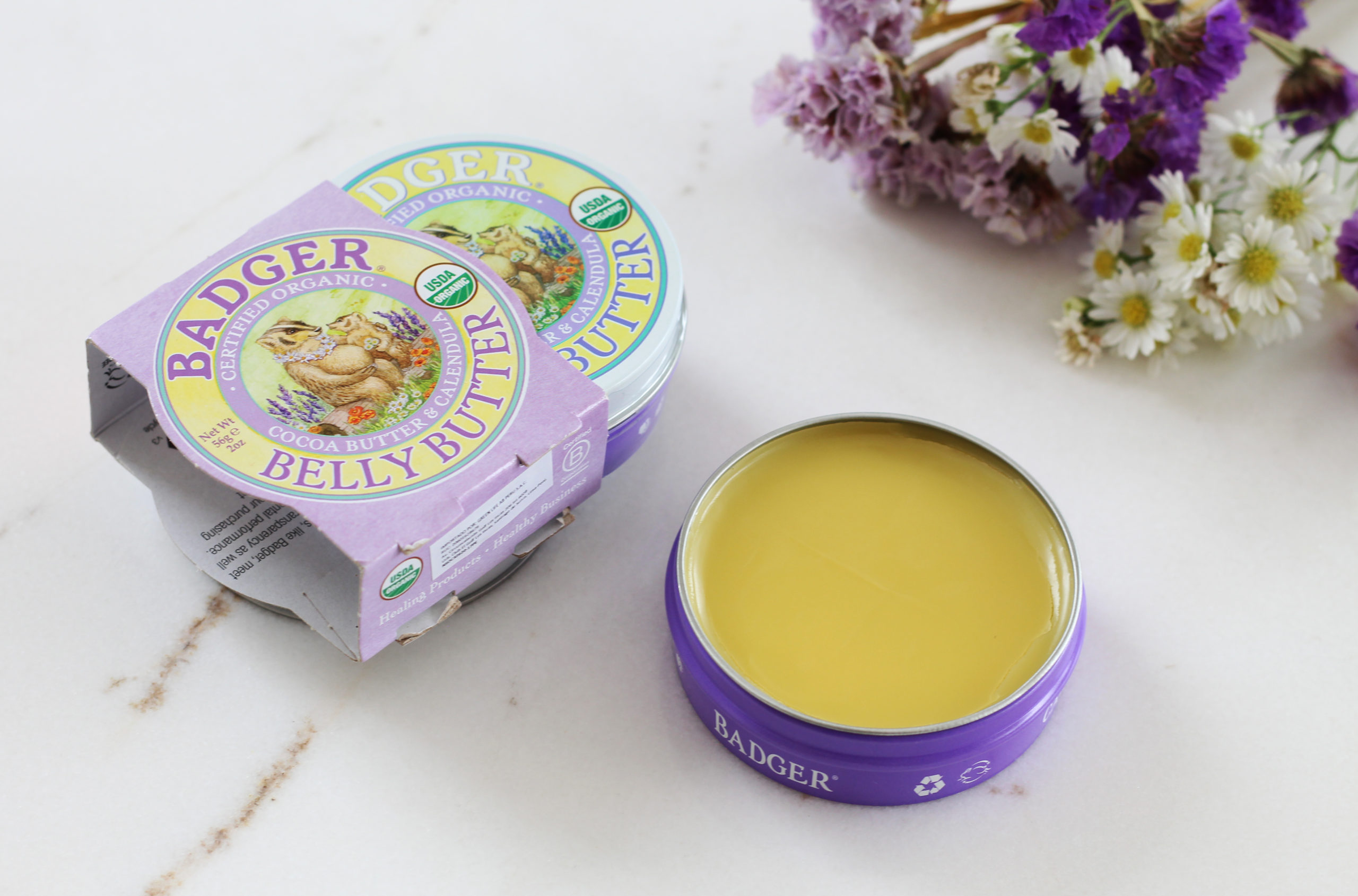 ‘Esta mezcla calmante y rica en emolientes alivia la piel del vientre seco, tenso y estirado.