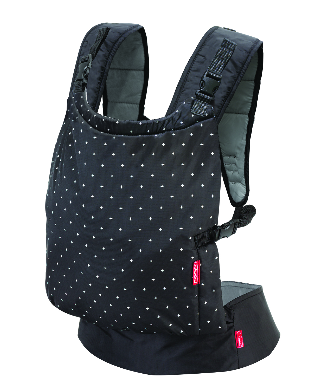 El Canguro Zip es un portabebés con todas las funciones, con correas acolchadas para los hombros y un cinturón ancho.