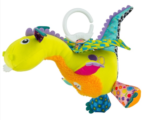¡Al bebé le encantará ver a Flip Flap Dragon agitando sus alas! Tire del clip blanco para hacer que sus vibrantes alas se volteen y aleteen hacia adelante y hacia atrás. El bebé también puede explorar sus pies arrugados y la nariz chillona. Con tejidos suaves en una variedad de colores contrastantes con seis materiales diferentes que tu bebé puede explorar y desarrollar sus sentidos. Con el clip Lamaze on-the-go, puedes enganchar fácilmente este lindo juguete para bebés a cochecitos, portaequipajes y pañaleras para divertirte a donde vayas.