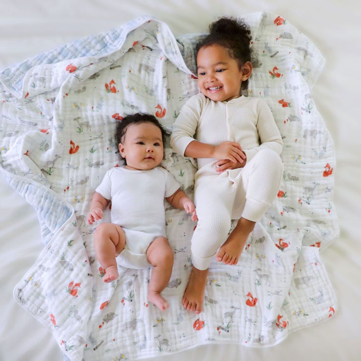 Nuestra colcha es de cuatro capas de muselina 100% algodón. Sus usos van más allá de acurrucarse y dormir calientito, también la puedes usar para que tu hijo juegue encima cuando están de paseo o simplemente cuando está jugando en el piso.