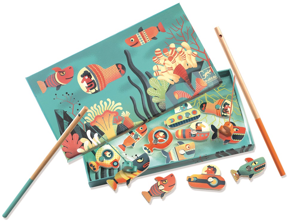 Juego magnético de madera con el cual tu pequeño desarrollará su capacidad de observación y coordinación, Contiene: 12 tiburones y 2 cañas de pescar.