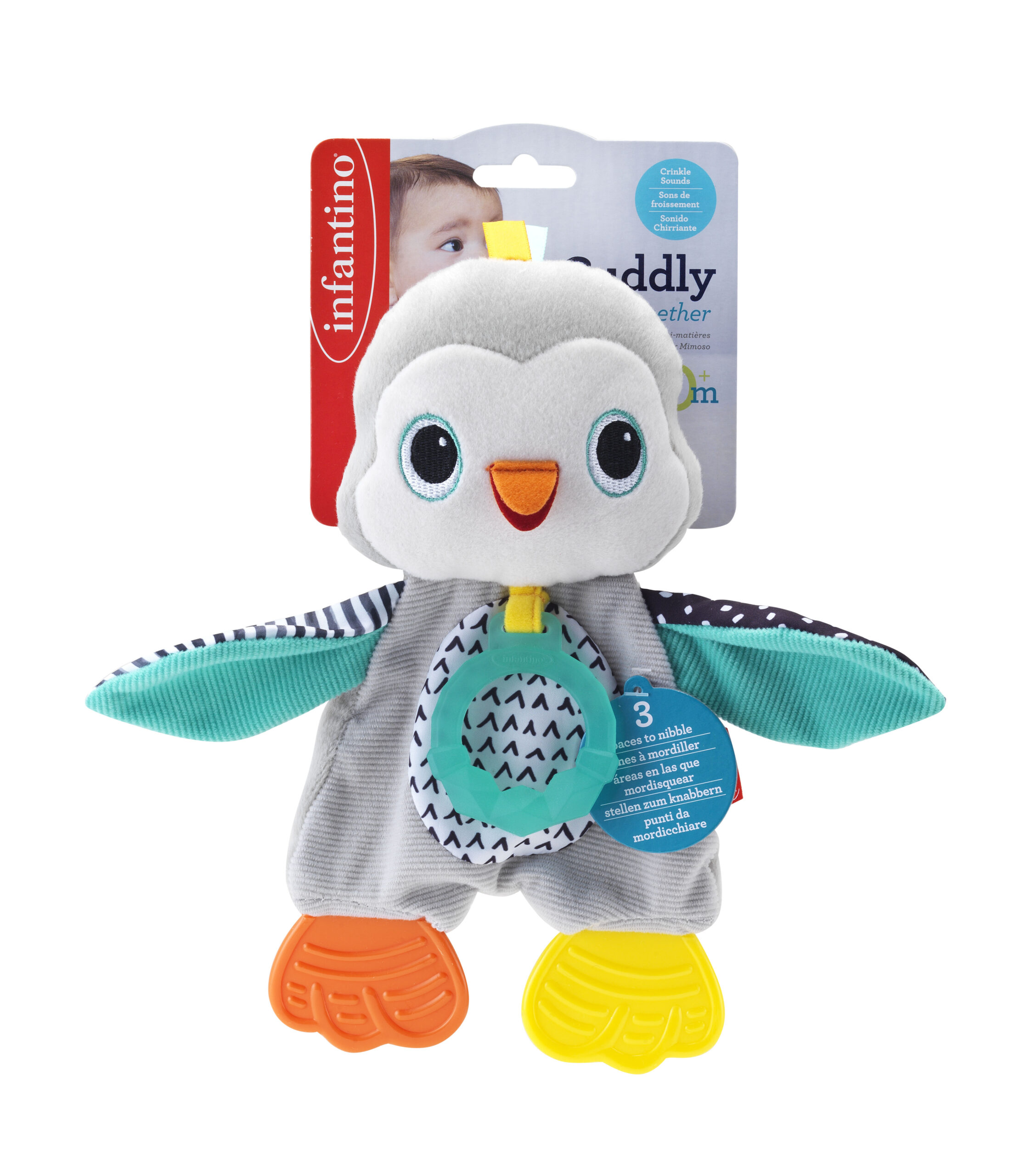 Este mordedor presenta texturas únicas y sonidos que al bebé le encantará explorar. Los bebés se sienten atraídos por los colores llamativos, los estampados divertidos y las telas suaves.