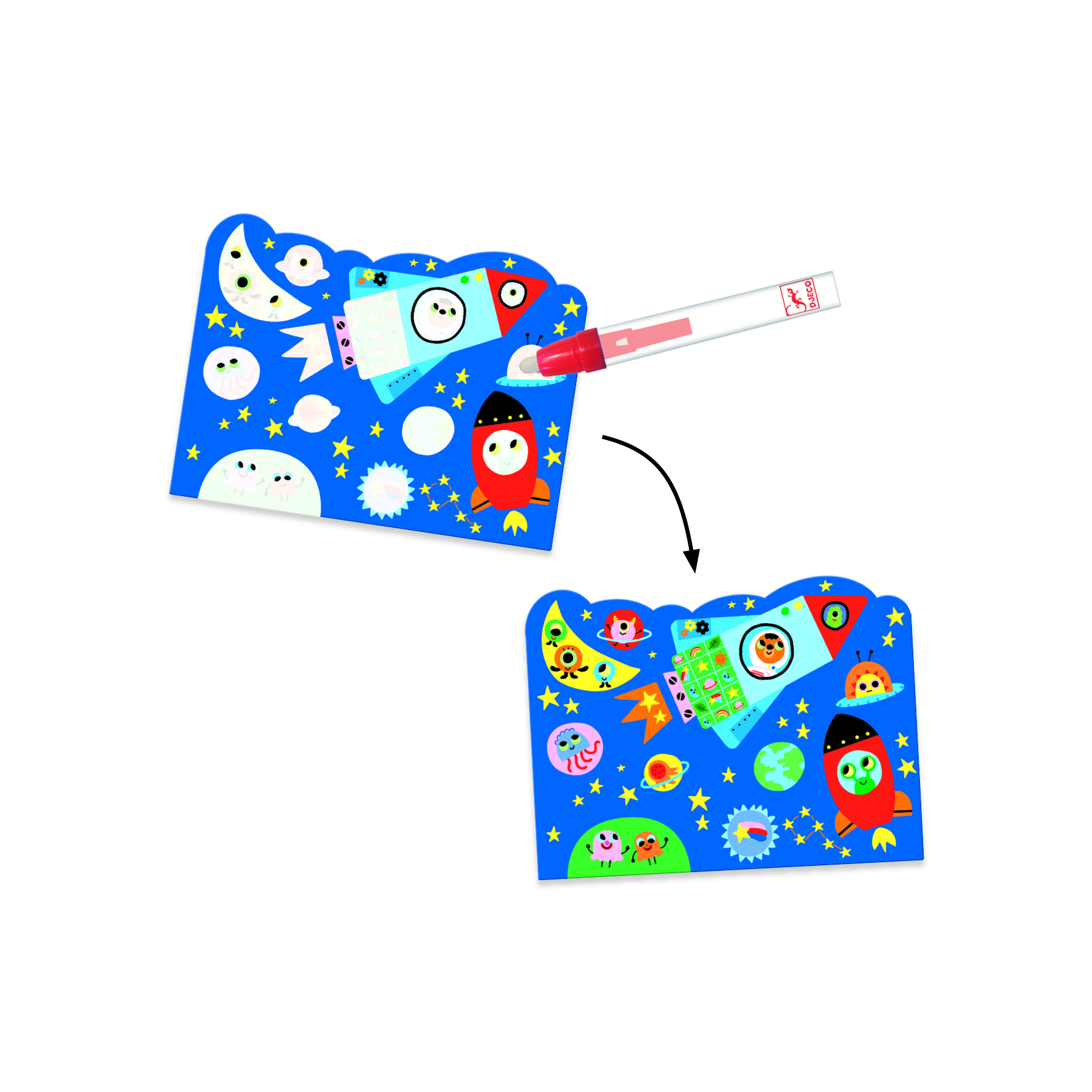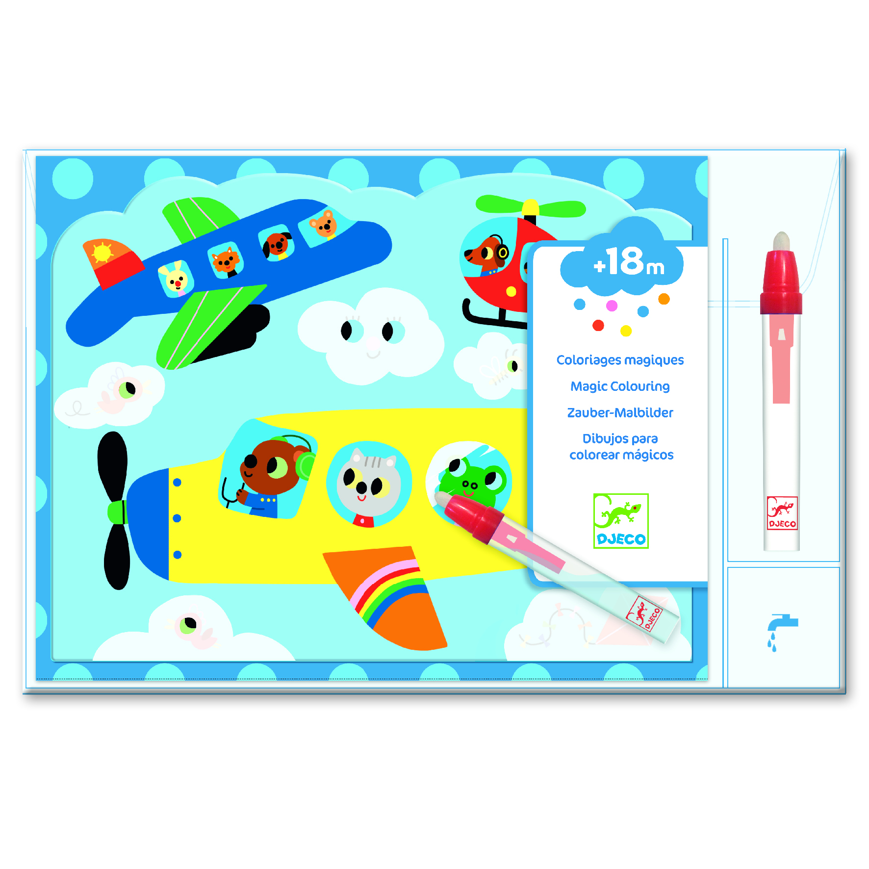Llena el bolígrafo con agua, Luego comienza a colorear para revelar todo tipo de sorpresas, Cuándo está seco puedes volver a comenzar. Es genial para viajar, Comer fuera u otras actividades en dónde quisieras mantener al pequeño de casa entretenido.
