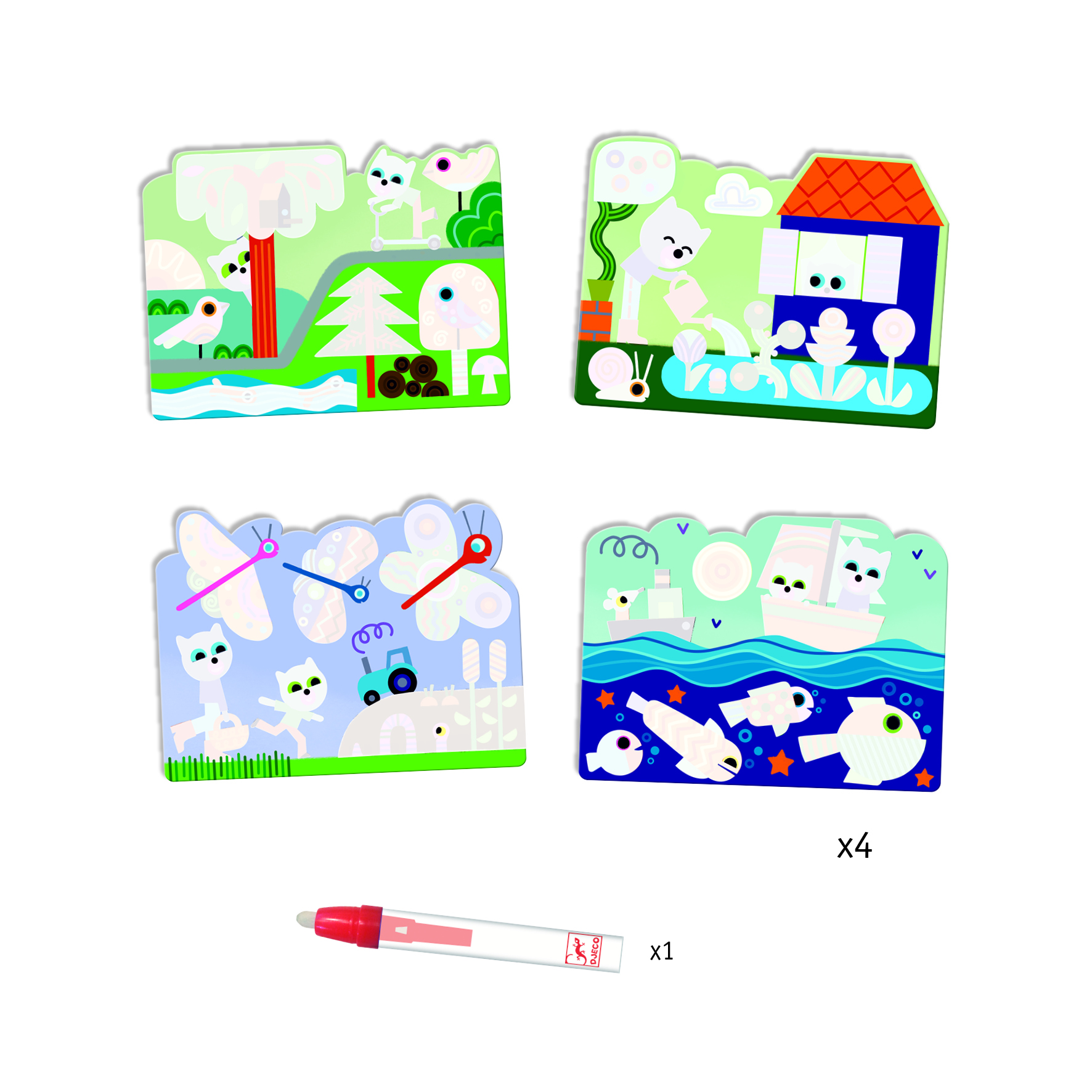 Llena el bolígrafo con agua, Luego comienza a colorear para revelar todo tipo de sorpresas, Cuándo está seco puedes volver a comenzar. Es genial para viajar, Comer fuera u otras actividades en dónde quisieras mantener al pequeño de casa entretenido.