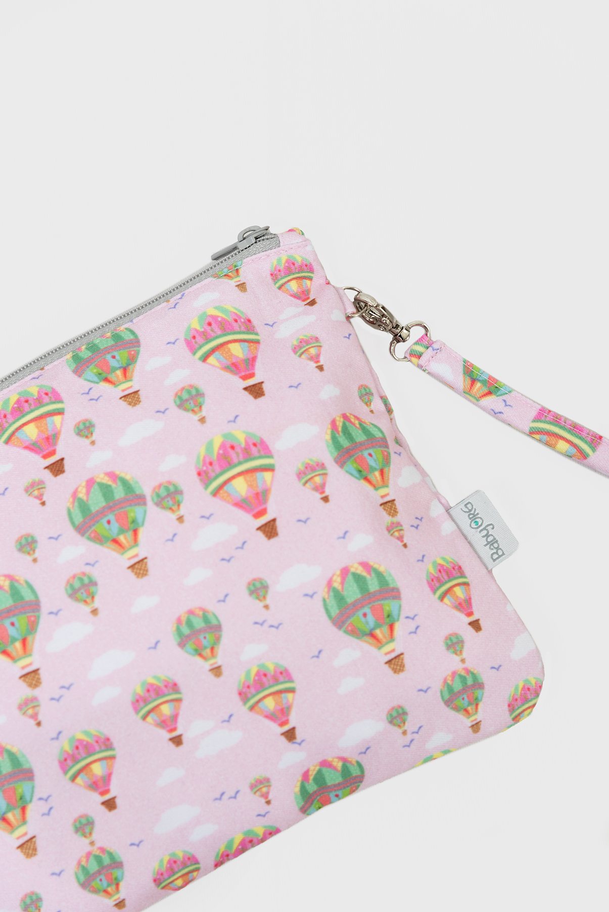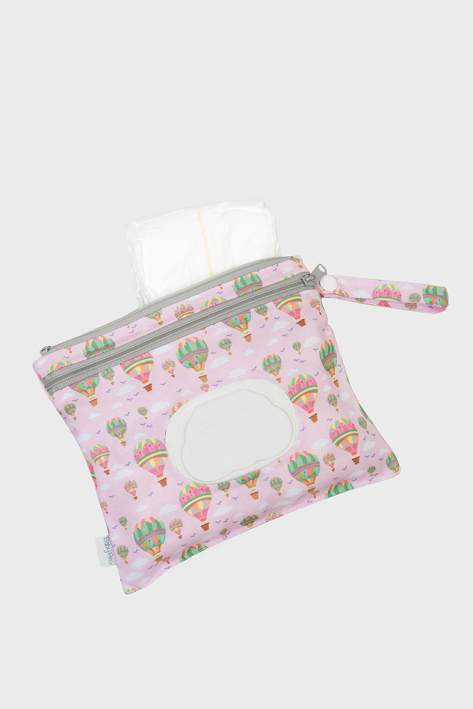 Neceser con 3 compartimientos para guardar y transportar pañales (aprox 3 o 4), pañitos húmedos (paquete completo de hasta aprox 50un), cremita y/u otros para el cambio de pañal. Asa con broche para colgar de donde desees. Tapa blanca NO incluída. Lavable.
