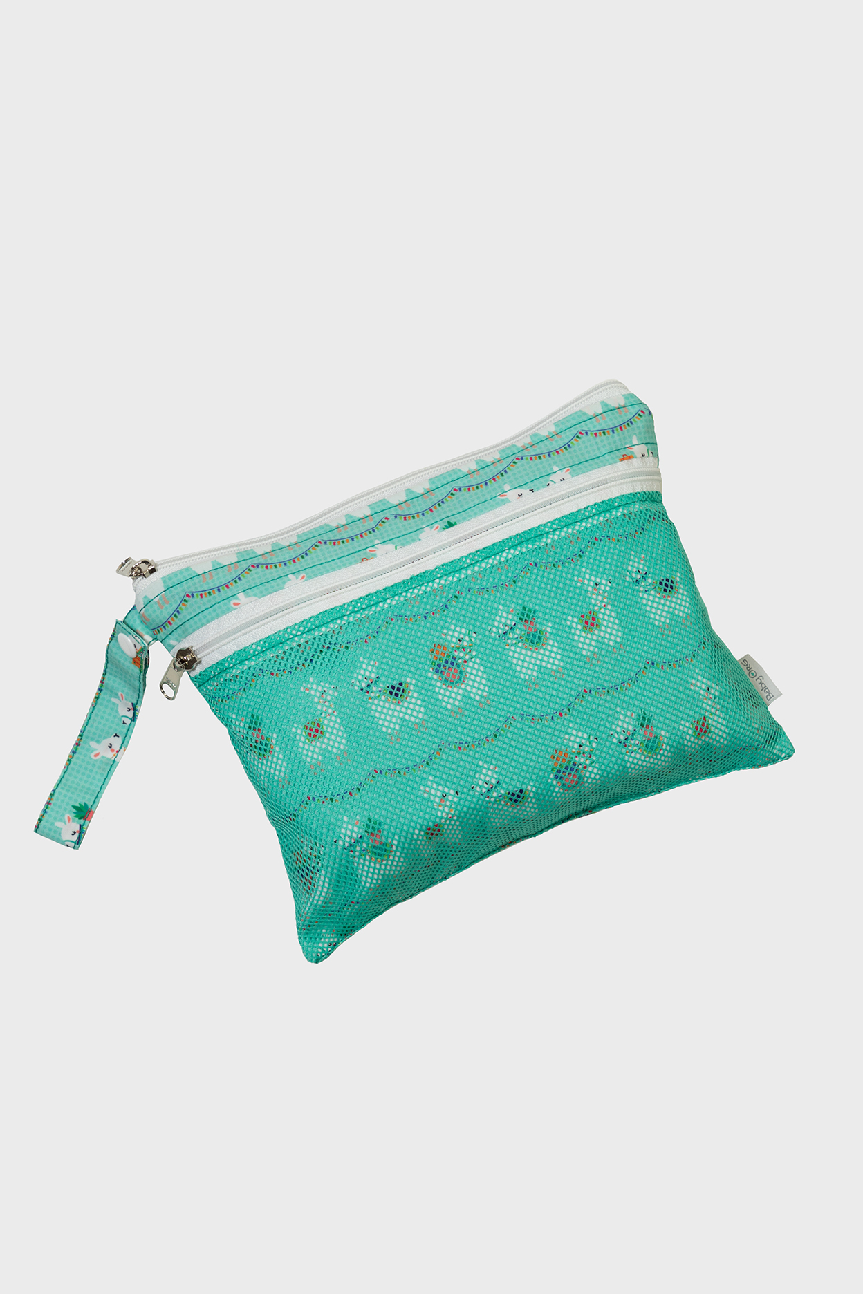 Neceser con 3 compartimientos para guardar y transportar pañales (aprox 3 o 4), pañitos húmedos (paquete completo de hasta aprox 50un), cremita y/u otros para el cambio de pañal. Asa con broche para colgar de donde desees. Tapa blanca NO incluída. Lavable.