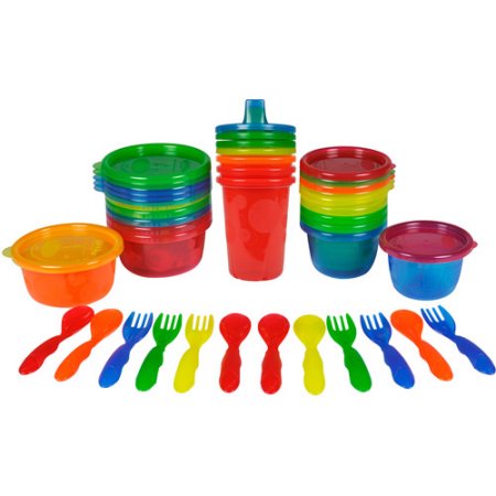 Aquí hay una variedad de productos de Take & Toss para adaptarse a la vida de su familia. Con 28 piezas en total, en la bolsa viene 5 tappers de 4.5 onzas, 4 tappers de 8 onzas, 6 cucharas, 6 tenedores y 7 vasos de sippy.