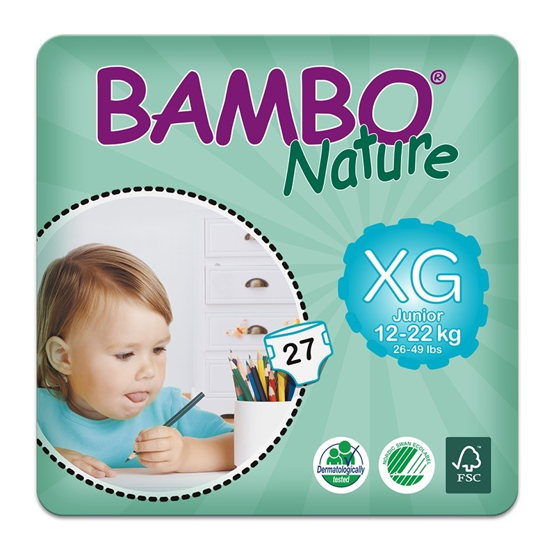Bambo Nature Junior es un pañal premium para niños de 12-22 kg. Los pañales están hechos con materiales 100% sustentables que representan la nueva generación de pañales ecológicos. Gracias a nuestra lámina posterior y superior de tipo textil, el pañal se siente extra suave al contacto con la piel del bebé.