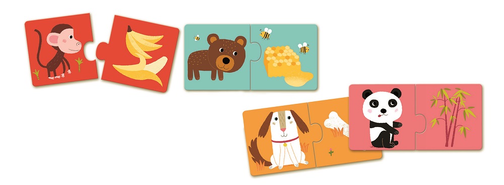 Una serie de diez rompecabezas qué ayudará a tú pequeño a diferenciar los alimentos de los animales, Contiene: 20 piezas.