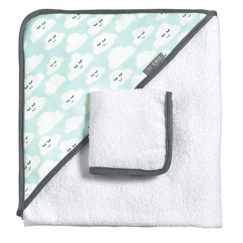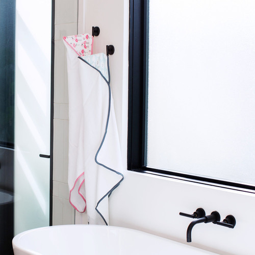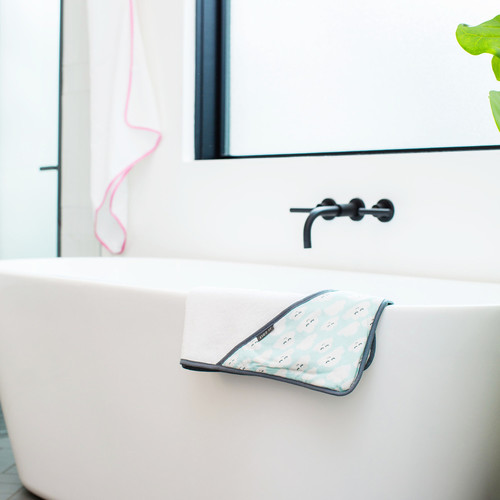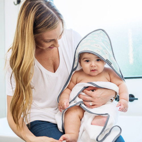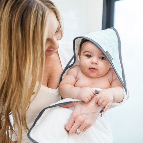 Nuestra toalla con capucha es de buen tamaño para envolver y secar al bebé. Está hecha de tela de felpa 100% algodón y viene con una toallita adicional.