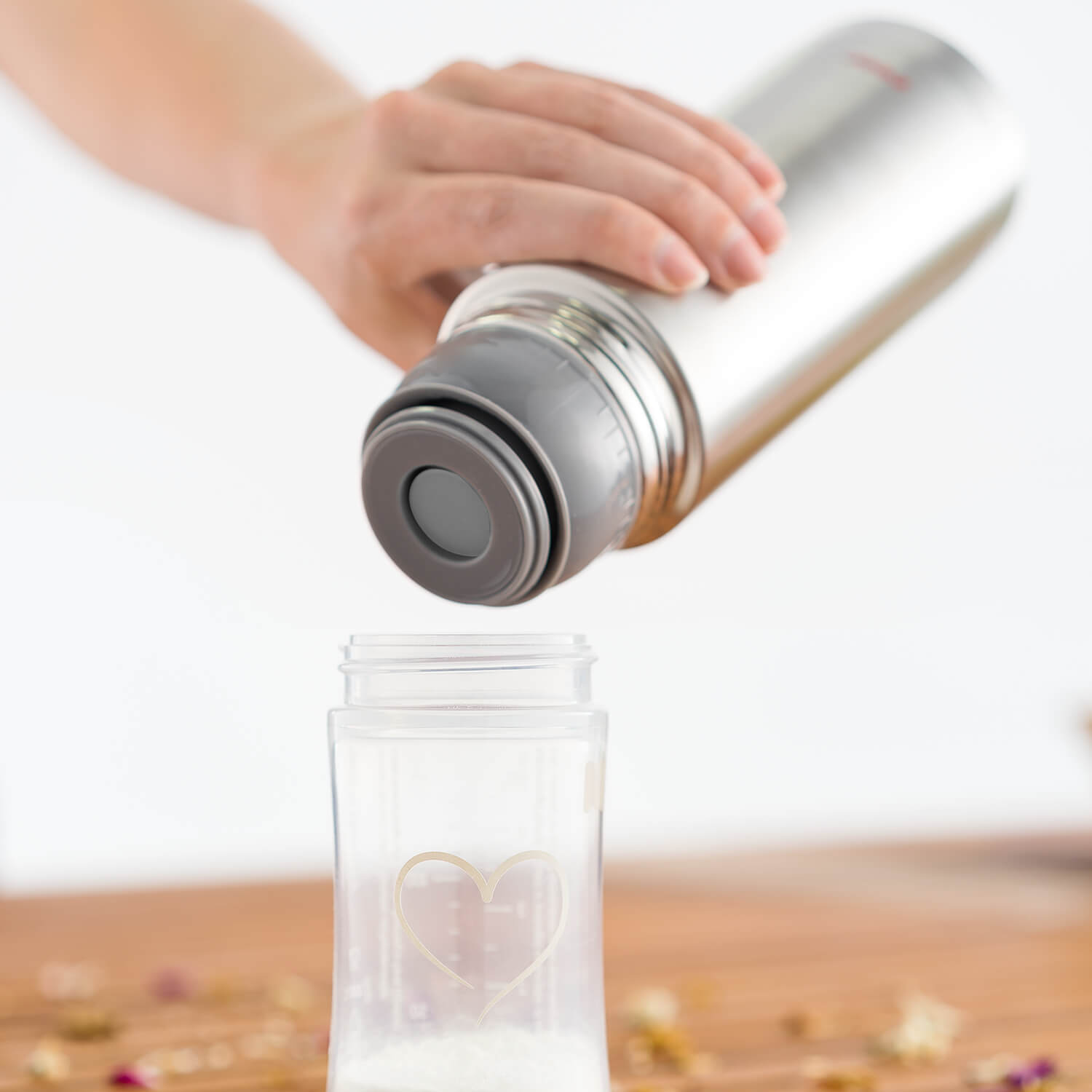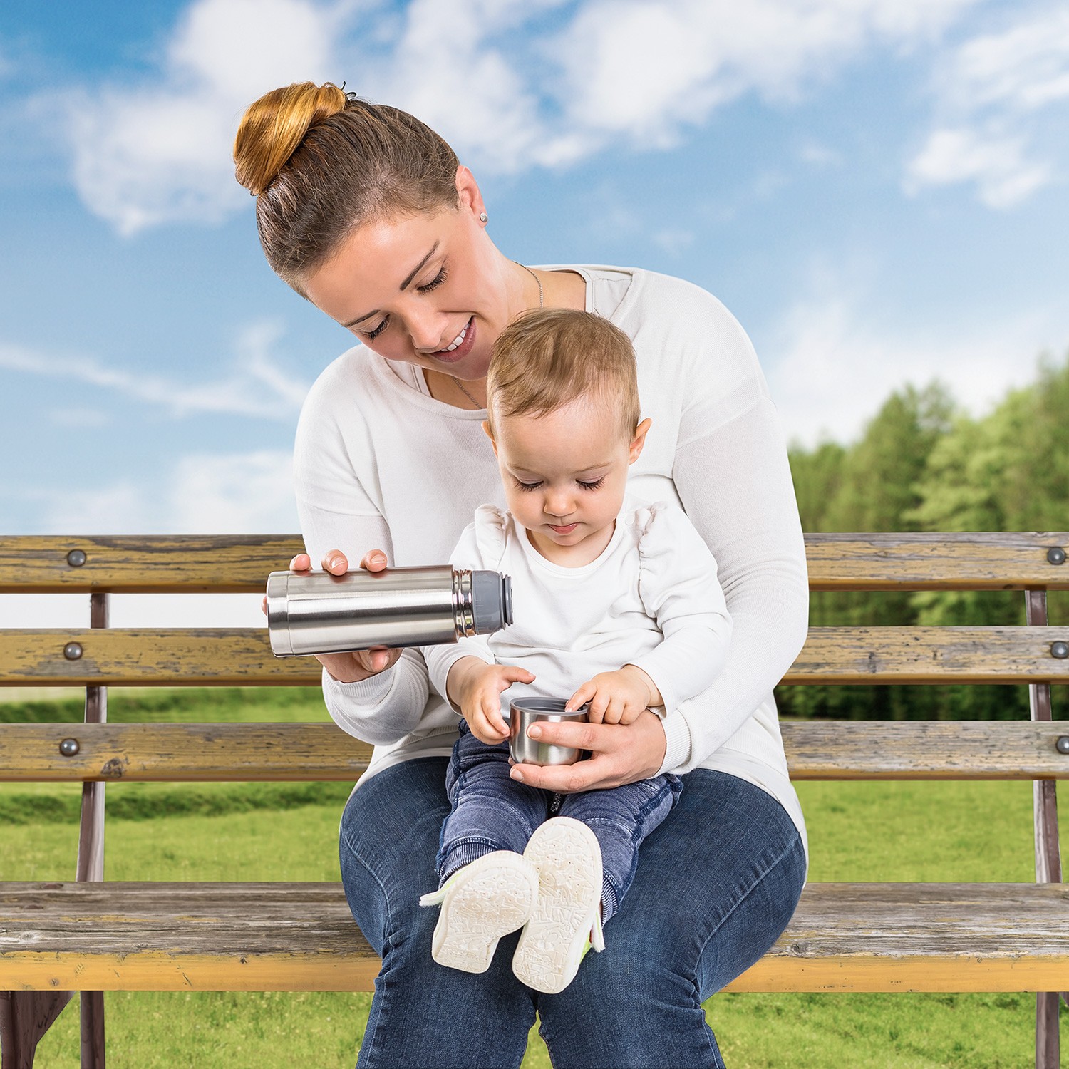| -Termo de acero inoxidable de alta calidad por dentro y fuera -Ideal para preparar comida para bebés en el hogar o fuera de casa -Mantiene las bebidas calientes hasta por 8 horas -También es adecuado para mantener bebidas frías -Sistema de apertura y cierre para usar con una sola mano -Capacidad: 350 ml -0% BPA -Seguridad alimenticia: probado de acuerdo con los estándares de la UE -No apto para lavavajillas -Edad recomendada: 0 + meses |